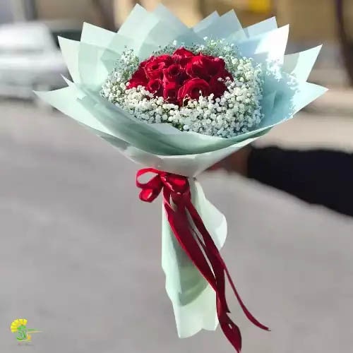 اگر به دنبال هدیهای هستید که بدون کلام، عشق و احساس را منتقل کند، دسته گل مروارید انتخابی ایدهآل است. گل رز قرمز، همواره نماد عشق و علاقه است و ترکیب آن با گلعروس سفید، جلوهای لطیف و دلانگیز به این دسته گل داده است.