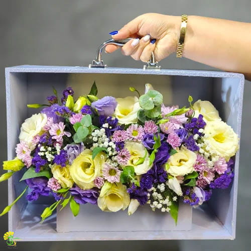 گلآرایی این باکس با استفاده از تازهترین گلهای فصل مانند لیسیانتوسهای سفید، داوودیهای مینیاتوری و گلهای عروس در طیف رنگی بنفش و کرم انجام شده است. این ترکیب رنگی حس آرامش را القا میکند. در کنار باکس گل هدیه، یک کیک تولد با تزئین حرفهای قرار دارد که طعم آن به اندازه ظاهرش دلنشین است. با ارسال گل و کیک در مشهد از طریق پیک گل، شما نه تنها یک هدیه، بلکه یک تجربه شیرین را به عزیزانتان تقدیم میکنید.