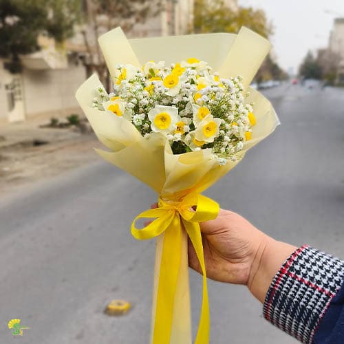 خرید دسته گل نرگس و ژیپسوفیلا؛ هدیهای ارزان و خوشعطر