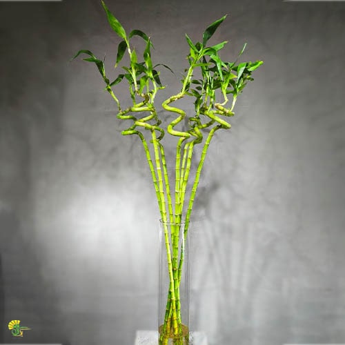 بامبوهایی که در تصویر مشاهده میکنید، از نوع بامبوهای پیچدار (Spiral) با کیفیت ممتاز هستند که در گلدان شیشهای استوانهای قرار گرفتهاند. اما چه چیزی این گیاه را تا این حد محبوب کرده است؟