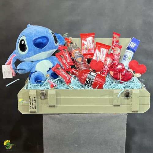 خرید باکس ولنتاین مشهد با عروسک استیچ | هدیه خاص و لاکچری