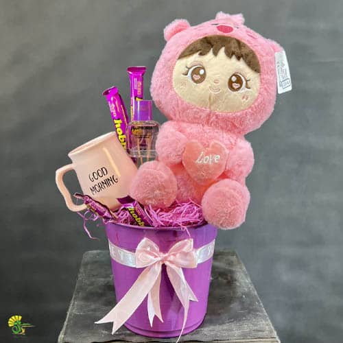 یکی از بزرگترین استرسها در خرید هدیه در مشهد، نحوه چیدمان آن است. در باکس هدیه دخترانه، تمام اقلام با پوشالهای صورتی هماهنگ شدهاند تا هدیه شما در بدو دریافت، چشمها را خیره کند. سطل فلزی بنفش علاوه بر زیبایی، محافظی محکم برای محتویات داخلی است.