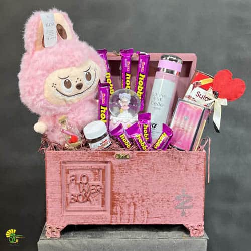 خرید باکس هدیه دخترانه لبوبو صورتی | هدیه خاص ولنتاین، روز دختر و تولد